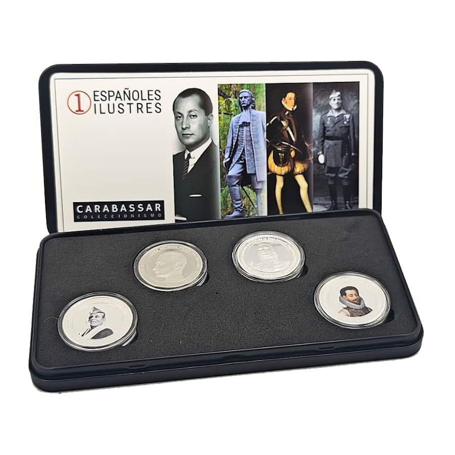 Detalles: CAJA METALICA CON LAS 4 PRIMERAS MEDALLAS REALIZADAS POR CARABASSAR COLECCIONISMO, INCLUYENDO LAS MONEDAS DE: JOSE ANTONIO PRIMO DE RIVERA, BLAS DE LEZO, ALEJANDRO FARNESIO Y MILLÁN-ASTRAY. UN REGALO IDEAL PARA COLECCIONISTAS Y AMANTES DE LA HISTORIA ESPAÑOLA